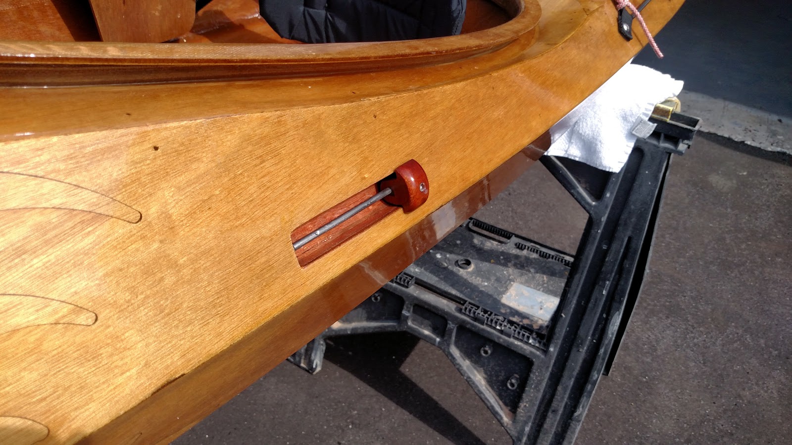 First the good stuff! The shop is full and I'm not lacking for work. It's important to stay focused and organized to maximize my time. A skeg retrofit is completed and ready to be put back into action and I've got a rowing boat to complete for a customer in Virginia. I know it is not a kayak, but my roots came from the wood boat world. Being chosen to finish this boat is a honor and I am enjoying every minute of it.